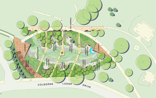 The Ontario Chapter of the Canadian Breast Cancer Foundation invited landscape architects, artists and associated design professionals to form teams to create a 1.2 - acre Garden of Hope within High Park, Toronto.